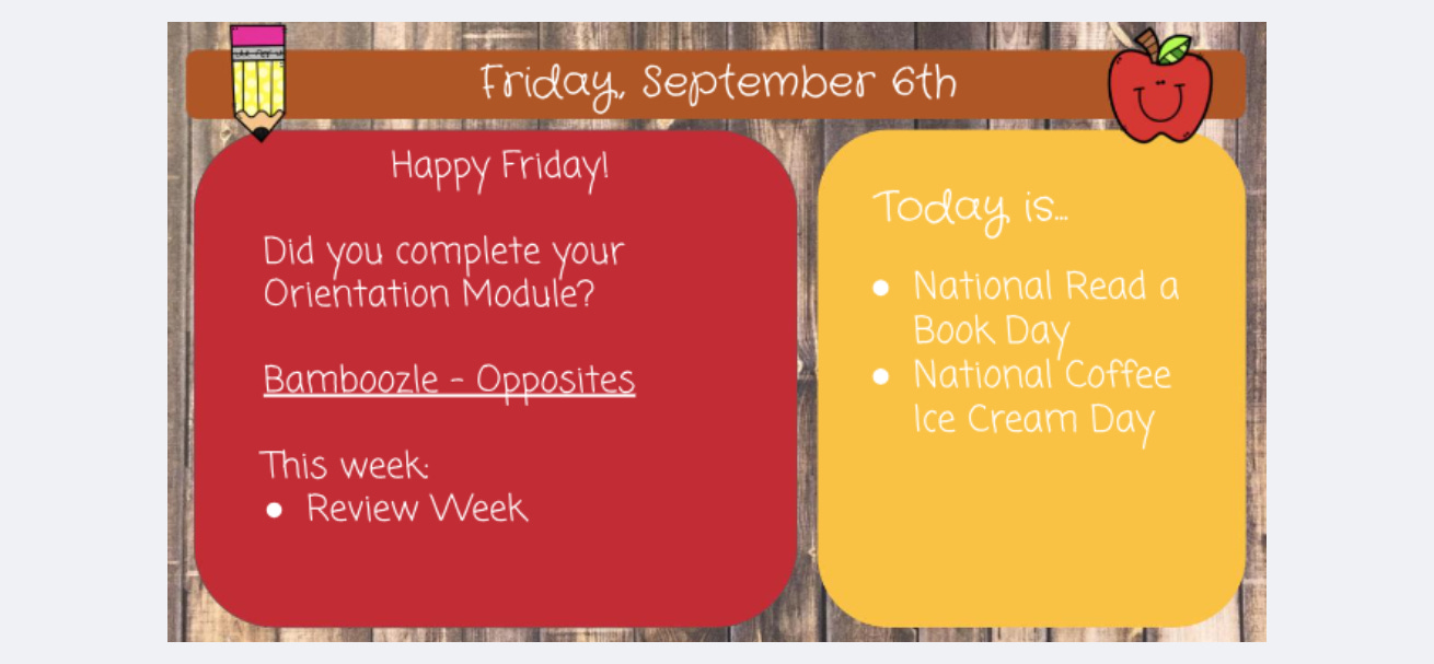 Homeroom announcements provide students with a sense of belonging and a central place to find guidance. Activities and fun facts offer a conversation starter.